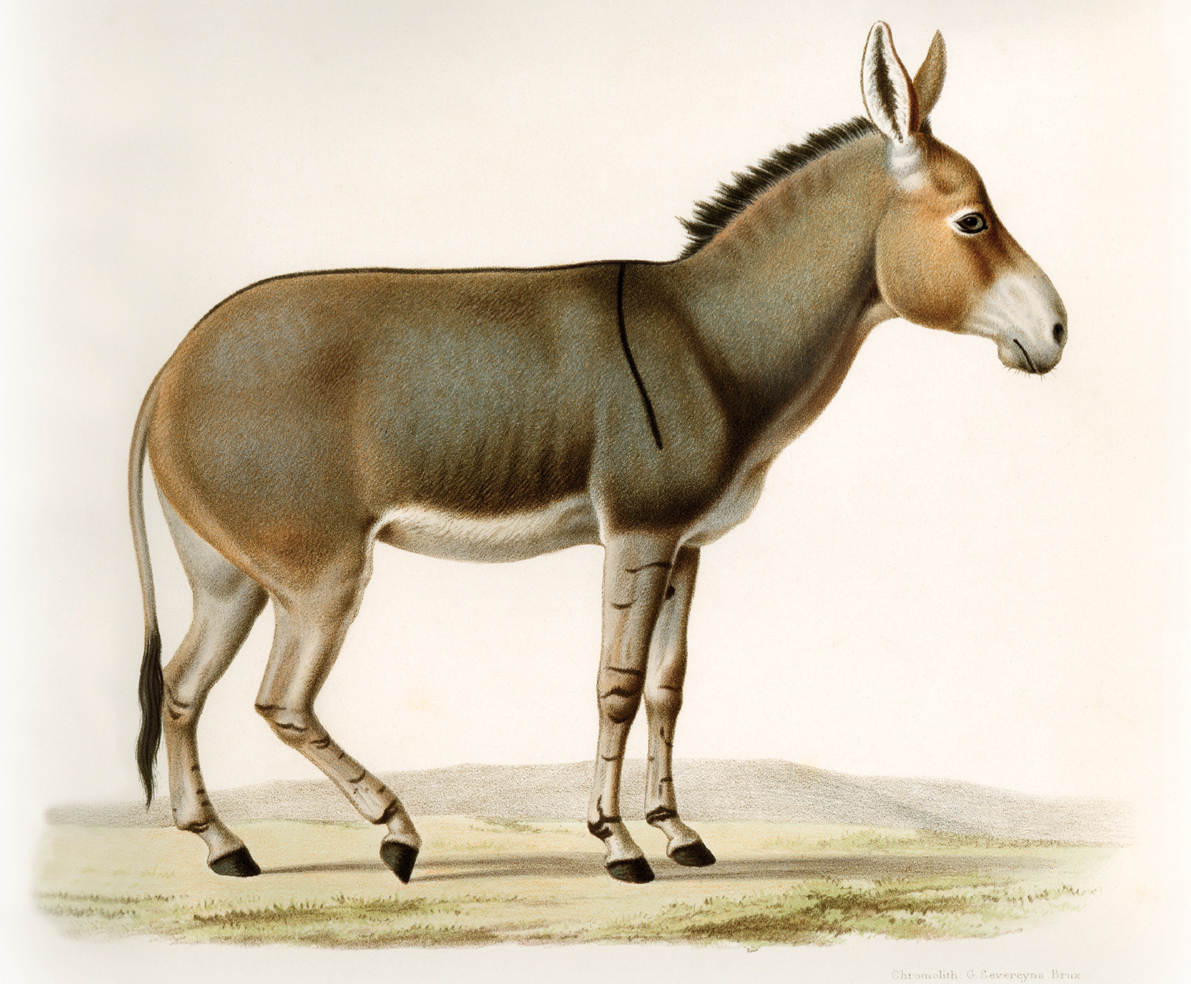 - Equus (Asinus) africanus africanus (von Heuglin & Fitzinger, 1866), Nubian Wild Ass (fig. 6). Lectotype from Atbara River, Sudan. Synonym: dianae (Dollman, 1935): Tokar, Sudan. Known range in historical times: eastern Sudan and northern Eritrea.