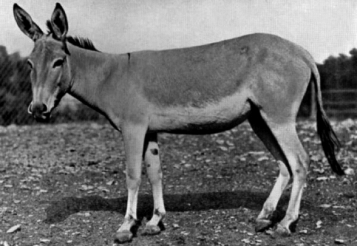 Fig. 6. Nubian wild ass E. a. africanus captured at “Barka” (probably = Baraka River), Eritrea, in the zoo of Rome, early 20th century. Photo: Zammarano. |