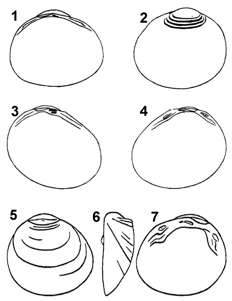 Pisidium subtruncatum (figs 3-4) was collected in a series of possible Pleistocene age, in lacustrine deposits along the Bulbula River, which runs from Lake Ziway into Lake Abigata in the Galla lakes basin (labeled 0738 B19, profile 1).