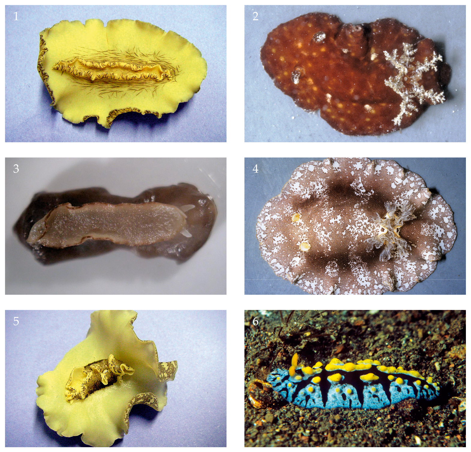 The cryptobranch dorids contain a vast number of species worldwide, with numerous old as well as recently described names (Valdés & Gosliner, 1999b; Dorgan et al., 2002). While the species themselves are often recognizable and identifiable, their generic placement is sometimes more difficult (Dayrat, 2010). The species included in the paper all belong to the family Discodorididae and are listed alphabetically by genus, implying no phylogenetic affinities what so ever. Recently, taxonomic work has lead to the synonymy of many genera [e.g. Miamira and Orodoris with Ceratosoma (Valdés & Gosliner, 1999a), Fryeria with Phyllidia (Valdés & Gosliner, 1999b), and Trippa with Atagema (Valdés & Gosliner, 2001)]. In some cases, this has proved a useful exercise, but in others it makes the classification of the species more difficult, ignoring previously widely accepted distinctions between these genera, and necessitating new names for well-known species (e.g. Notodoris with Aegires, but both have a well-known species named citrinus; Fahey & Gosliner, 2004). Higher systematic studies are certainly important for establishing evolutionary relationships, but knowing the identities of the individual species is essential for zoogeographical, phylogenetic, as well as natural products studies.